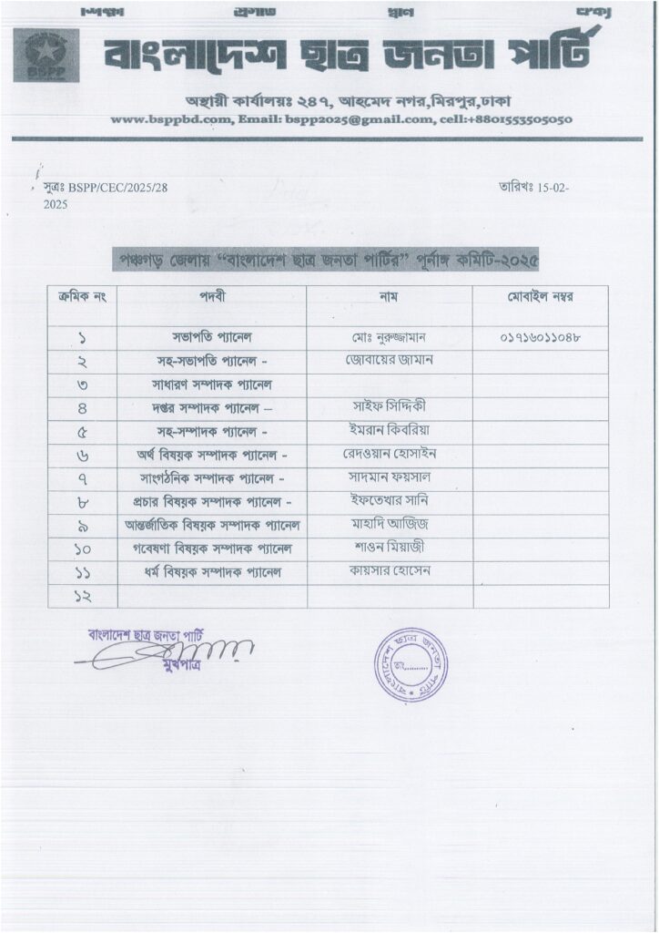 পঞ্চগড় জেলা কমিটি