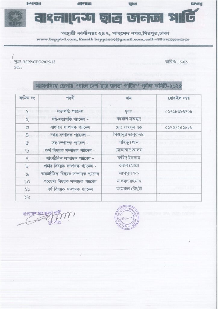 ময়মনসিংহ জেলা কমিটি