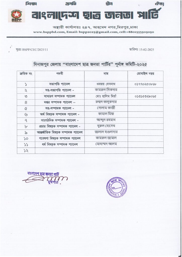 দিনাজপুর জেলা কমিটি