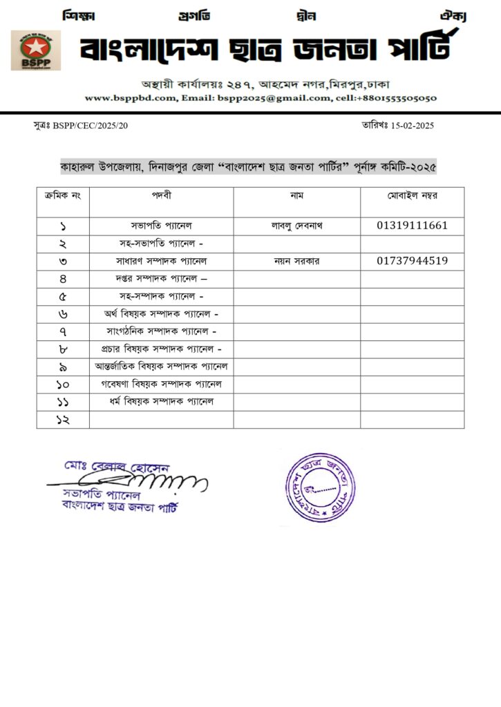 নিলফামারি জেলা কমিটি