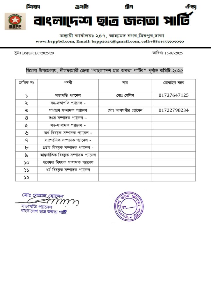 নিলফামারি জেলা কমিটি