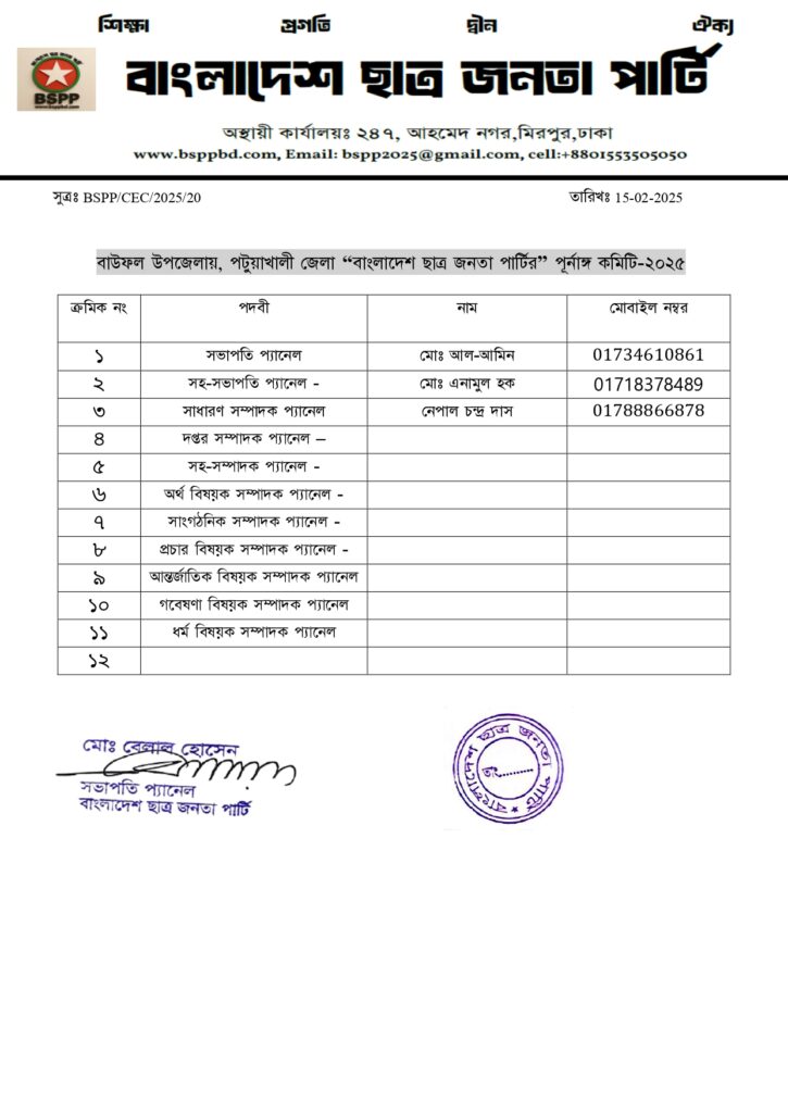 পটুয়াখালী জেলা কমিটি