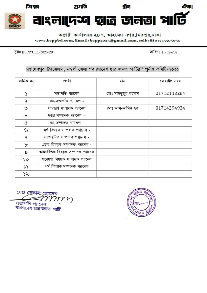 বগুড়া জেলা কমিটি