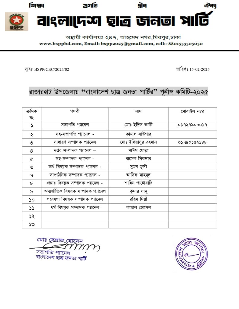কুড়িগ্রাম জেলা কমিটি
