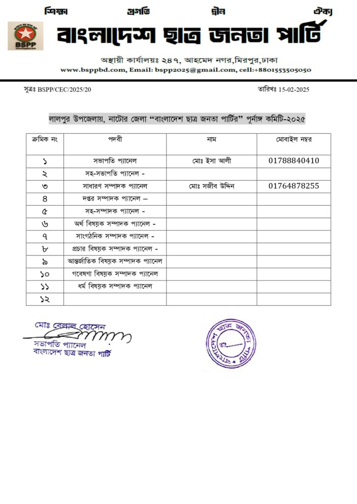 নাটোর জেলা কমিটি