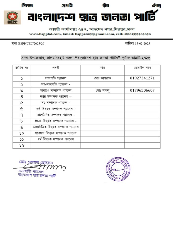 নিলফামারি জেলা কমিটি