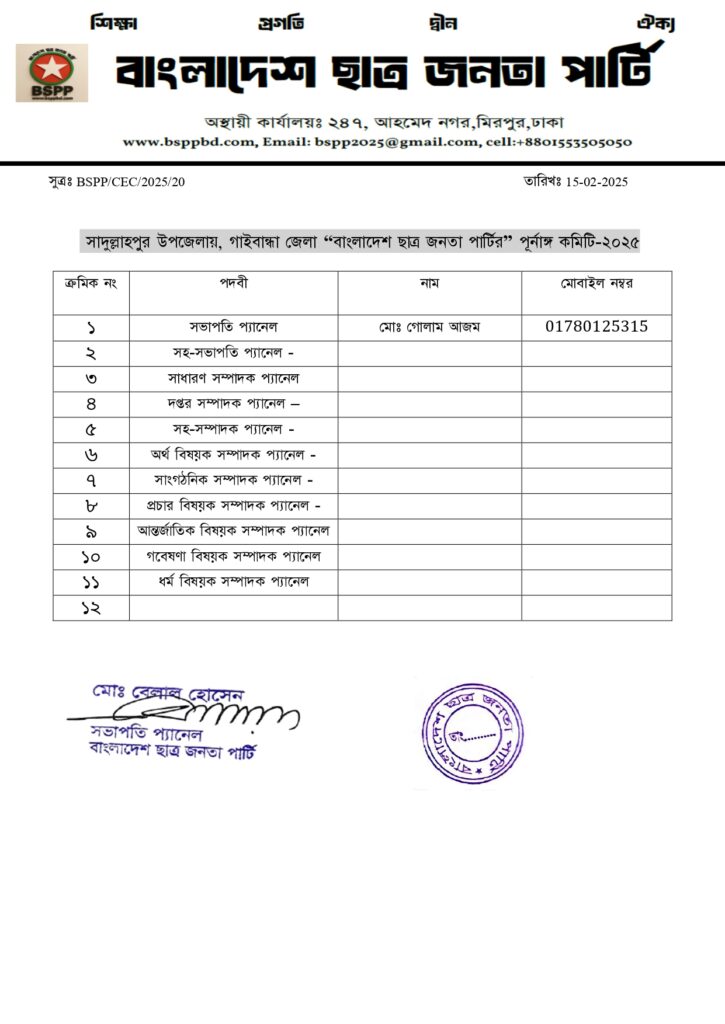 রংপুর জেলা কমিটি